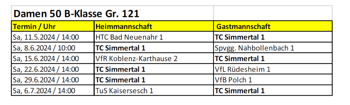 SPIELPLAN 2024 - DAMEN 50 - B-KLASSE